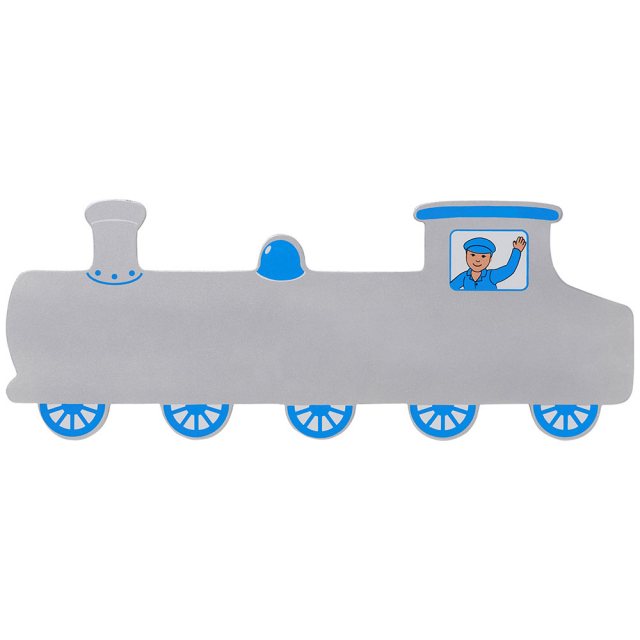 This large silver train plaque is a fun decoration for a child's bedroom. The plaque is supplied with pre-applied double sided sticky pads on the back ready to stick to smooth, flat walls and doors.